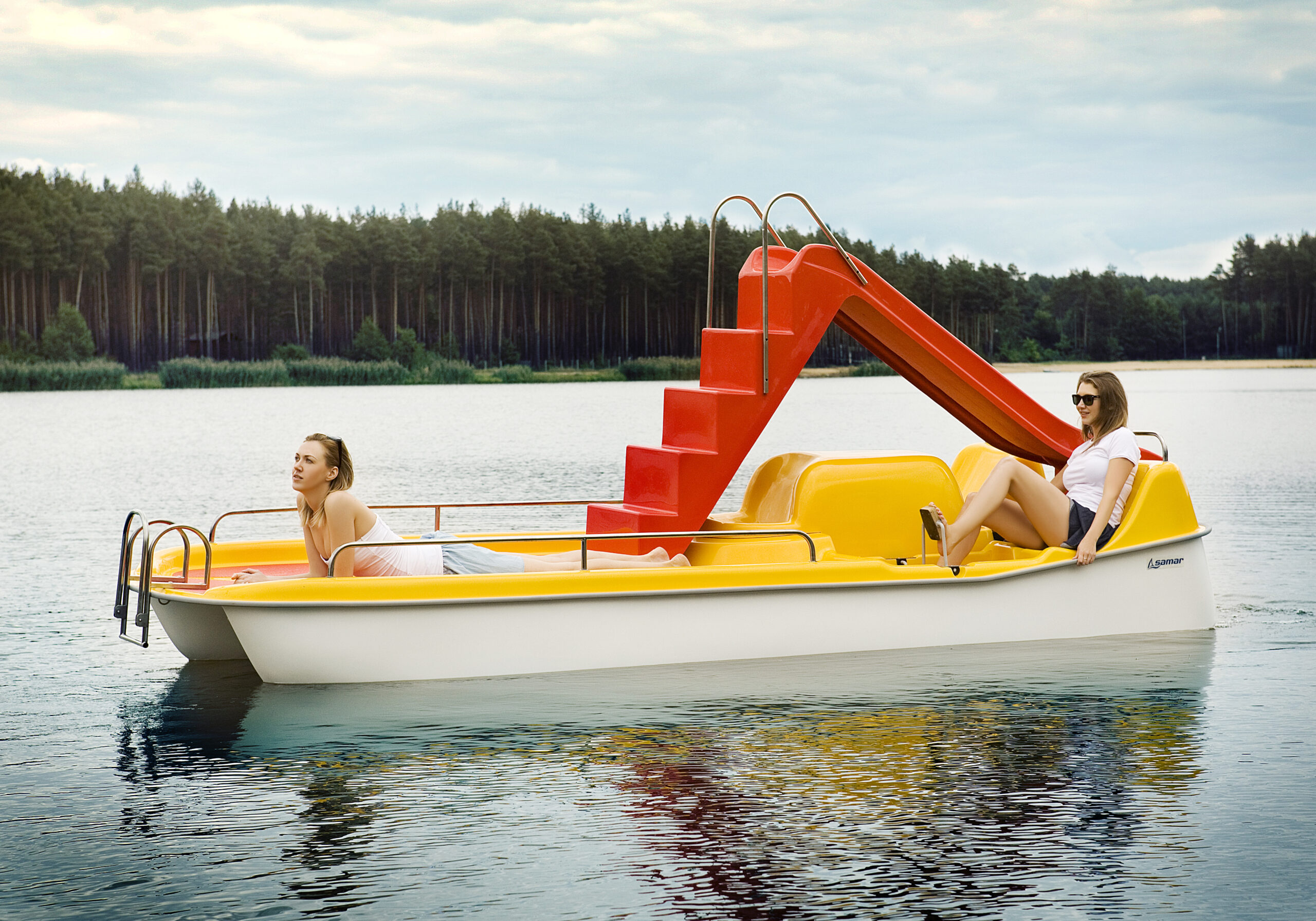 WALKER to jeden z mniejszych rowerów wodnych produkowanych przez SAMAR. Mniejsze wymiary nie sprawiają jednak, że jest on mniej funkcjonalny czy atrakcyjny – wręcz przeciwnie. Wygodnie pomieści trzy dorosłe osoby, a seria przemyślanych rozwiązań ergonomicznych zdecydowanie podnosi jego atrakcyjność.